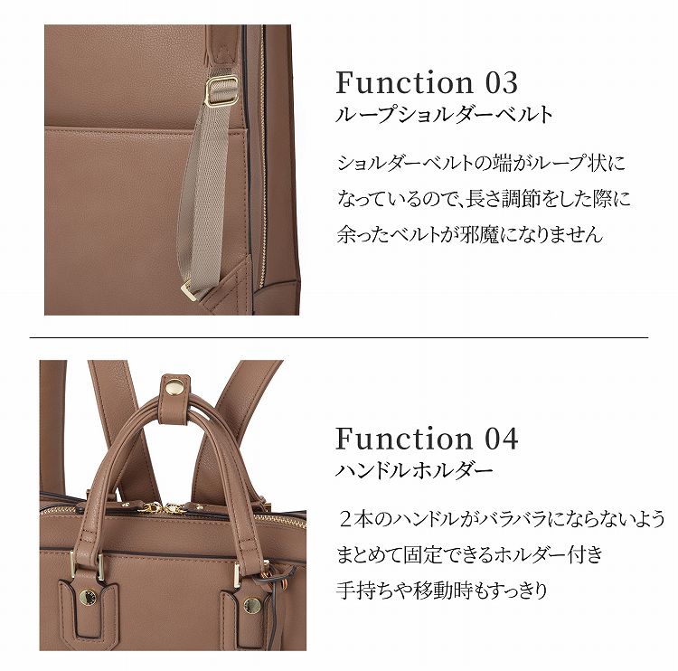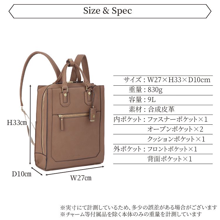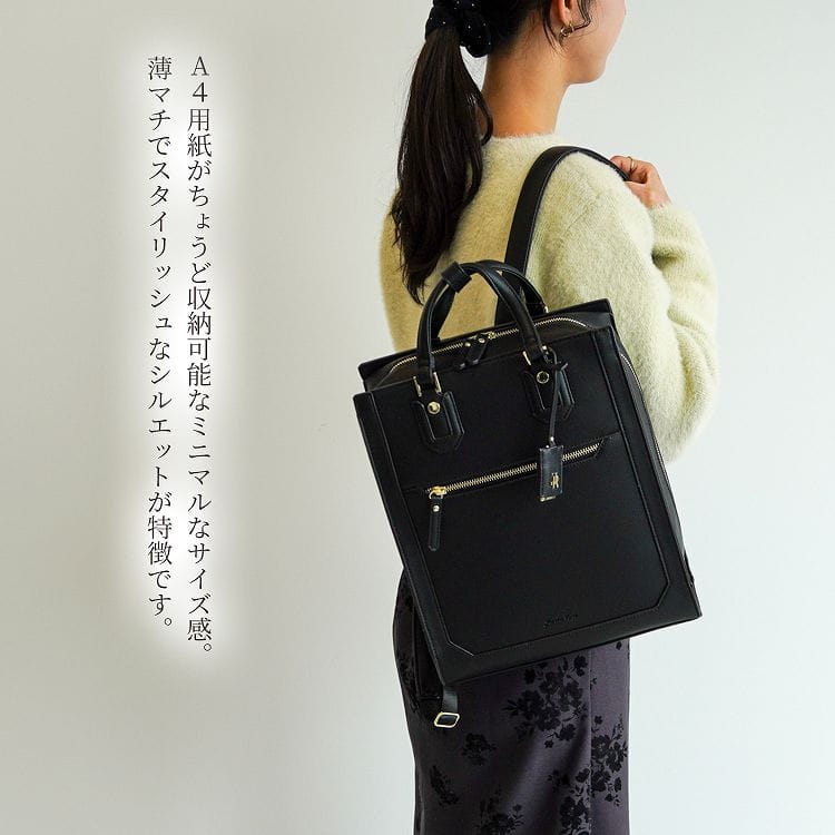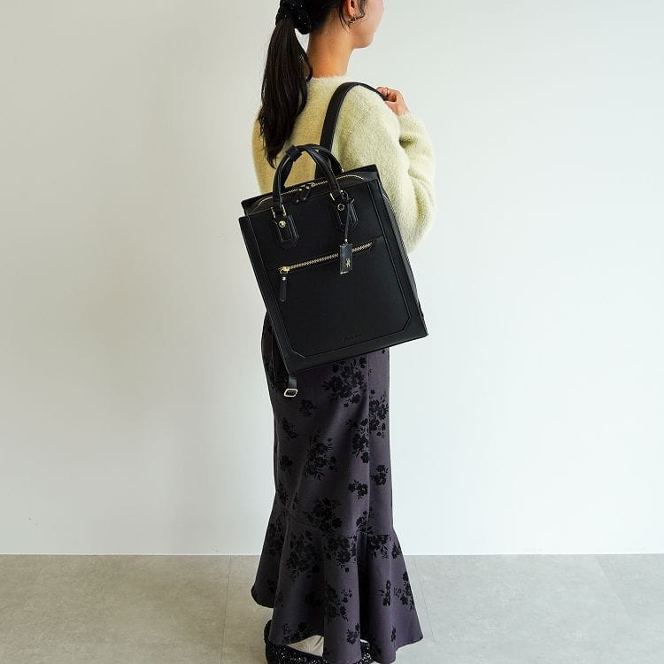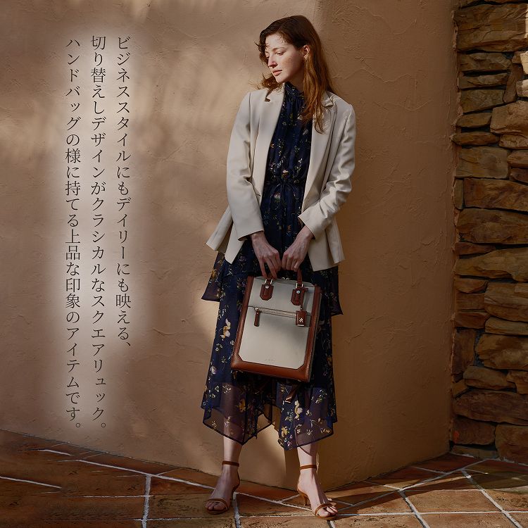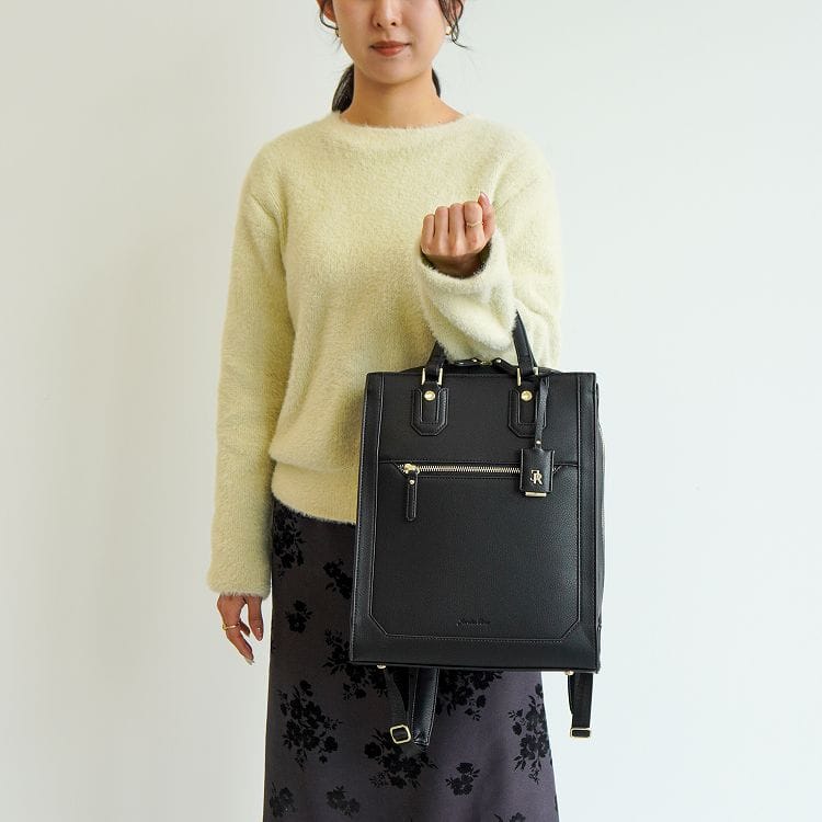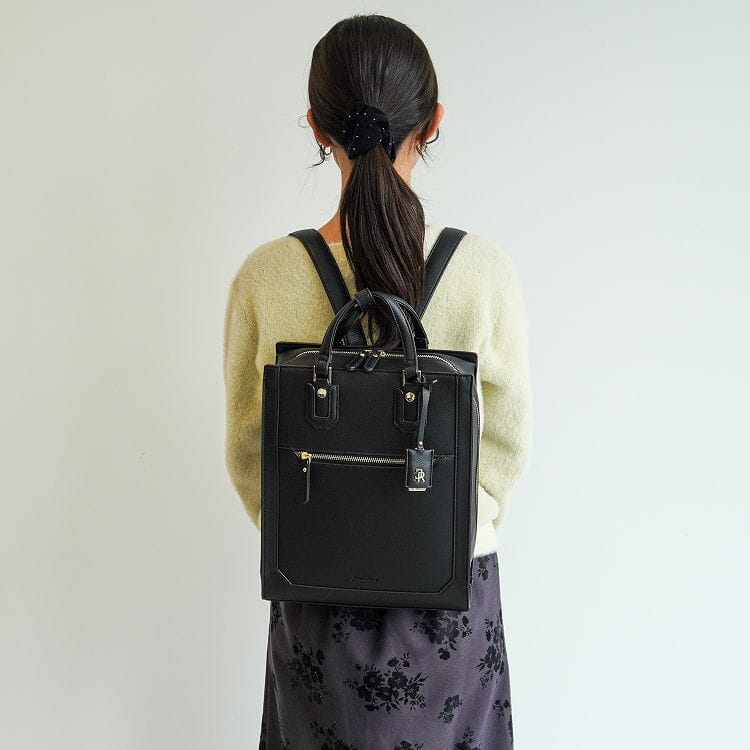 ハンドバッグのように持てるクラシカルなスクエアリュック。