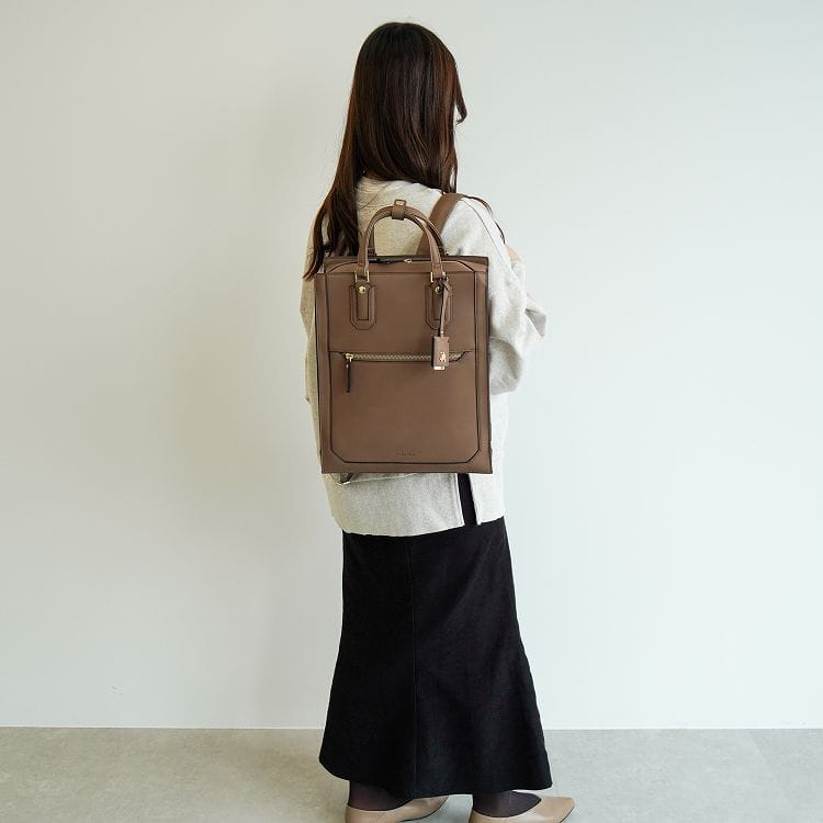 カジュアルダウンせず、きれいめコーデに合わせやすいリュックです。