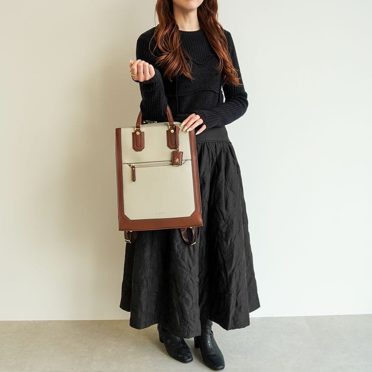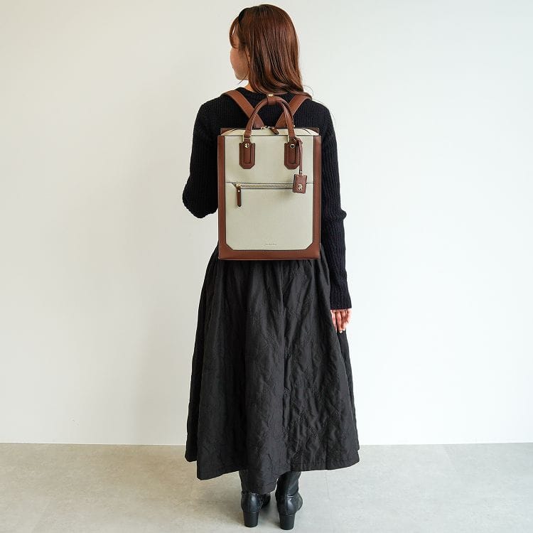 カジュアルダウンせず、きれいめコーデに合わせやすいリュックです。
