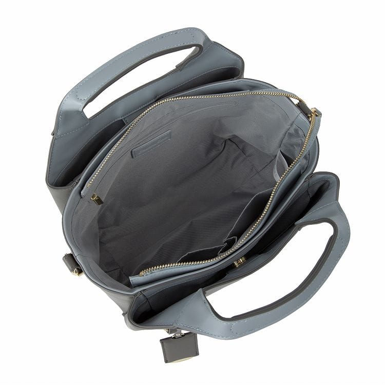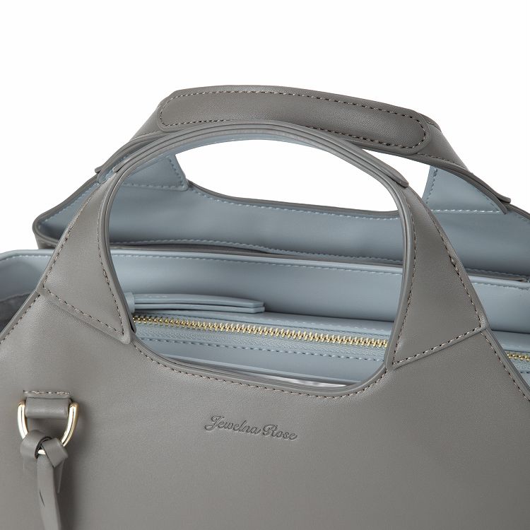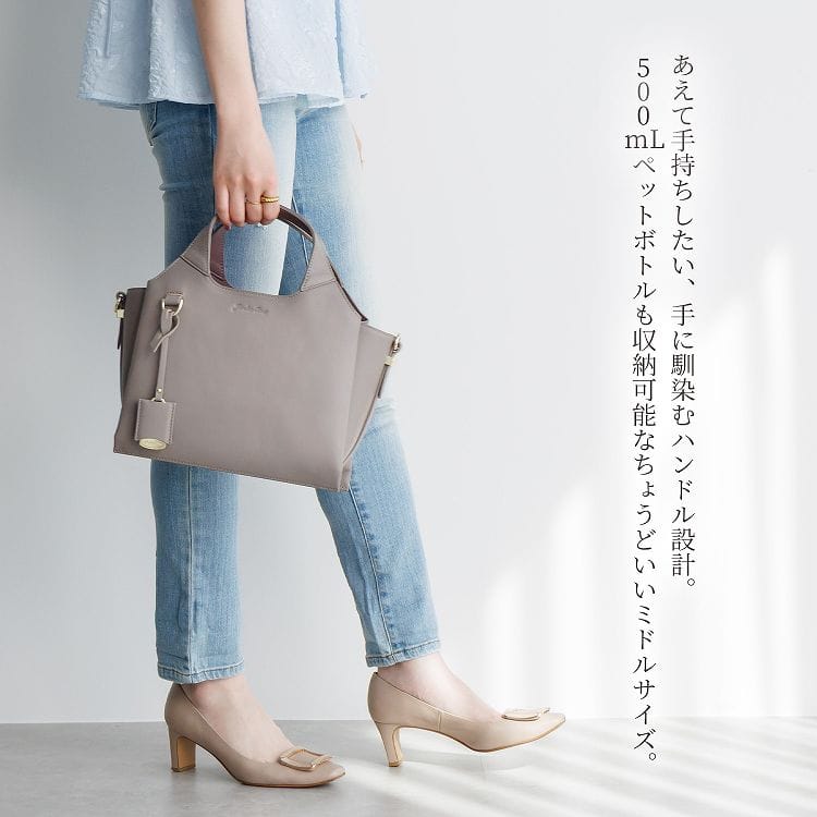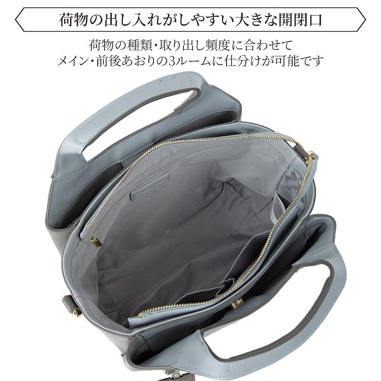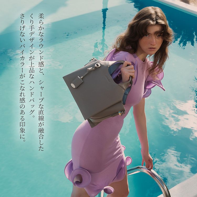 柔らかなラウンド感とシャープな直線が融合した上品なくり手のハンドバッグ。