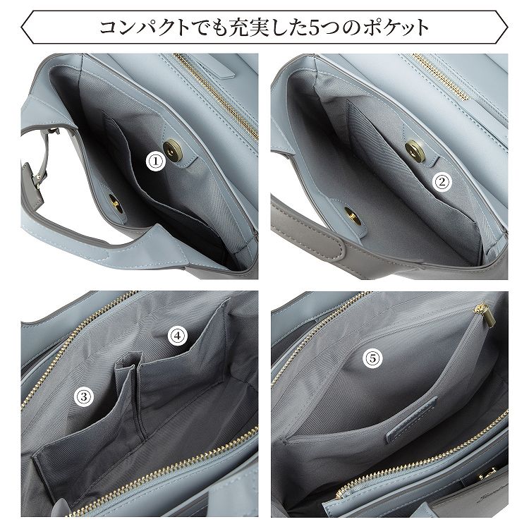 前後に設置した大き目のあおりポケットと、ファスナー付きのメイン収納スペースで