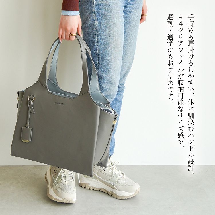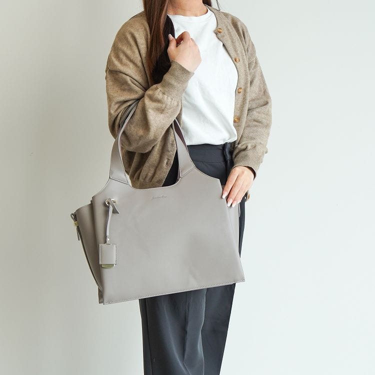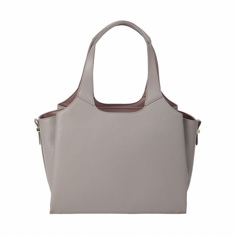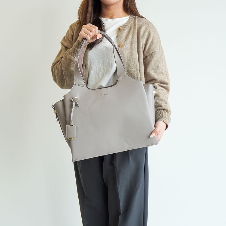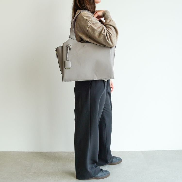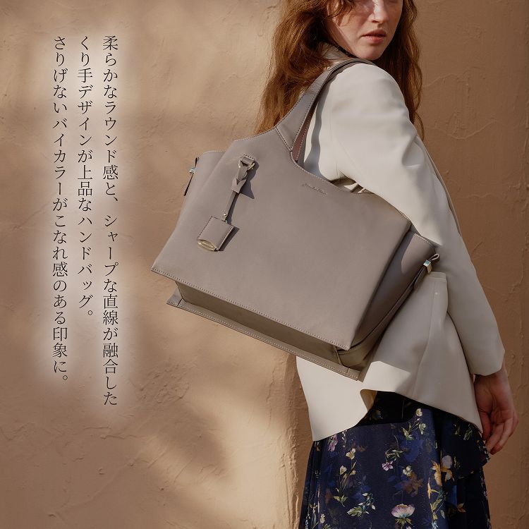 柔らかなラウンド感とシャープな直線が融合した上品なくり手のトートバッグ。