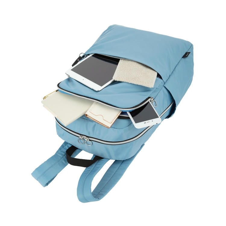 デッドスペースになりがちな上部に開閉しやすいダブルファスナーポケットを装備。