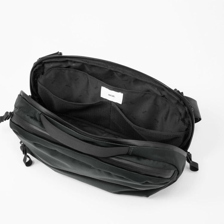 タウンユースやカジュアルな通勤スタイルにも使いやすい、10.1インチタブレット対応のヨコ型ボディバッグ。