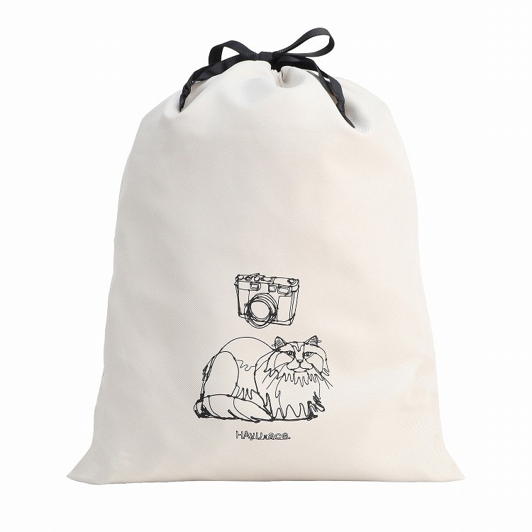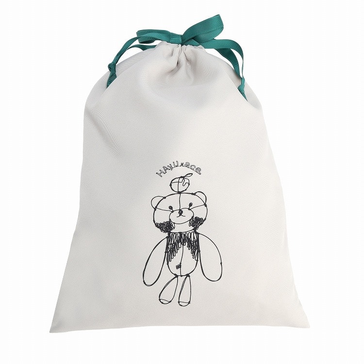 長毛ネコと人気のリンゴクマのプリントが可愛い巾着セット。