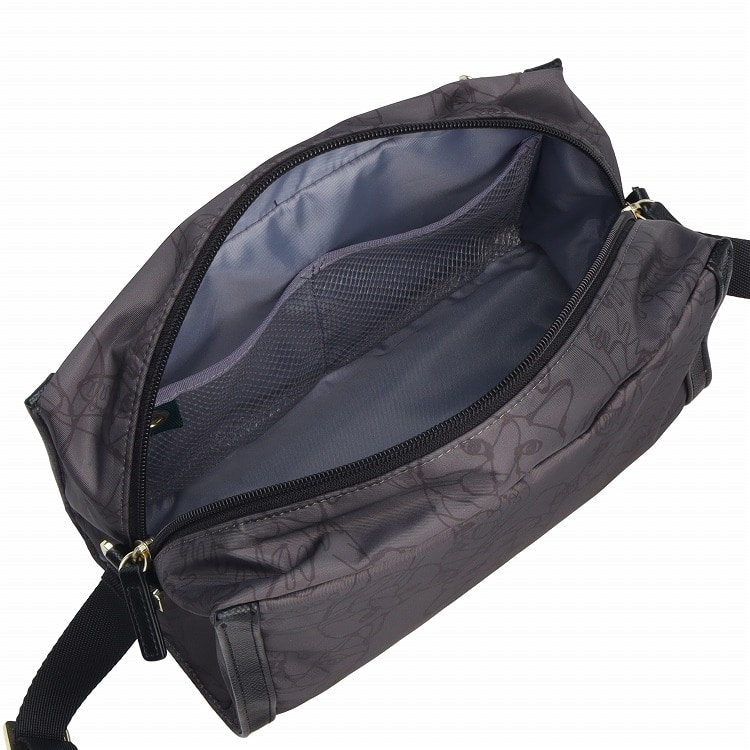 日常使いから旅行まで幅広く活躍する、たっぷり収納力が魅力の横型ショルダーバッグ。