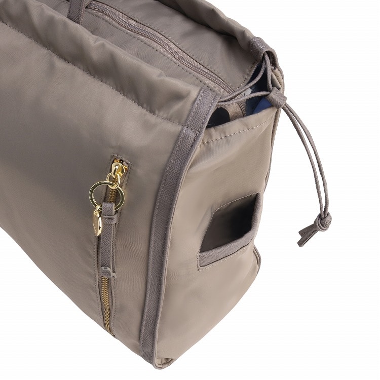 開口部はファスナー仕様で、中身が見えにくく荷物の持ち歩きも安心。