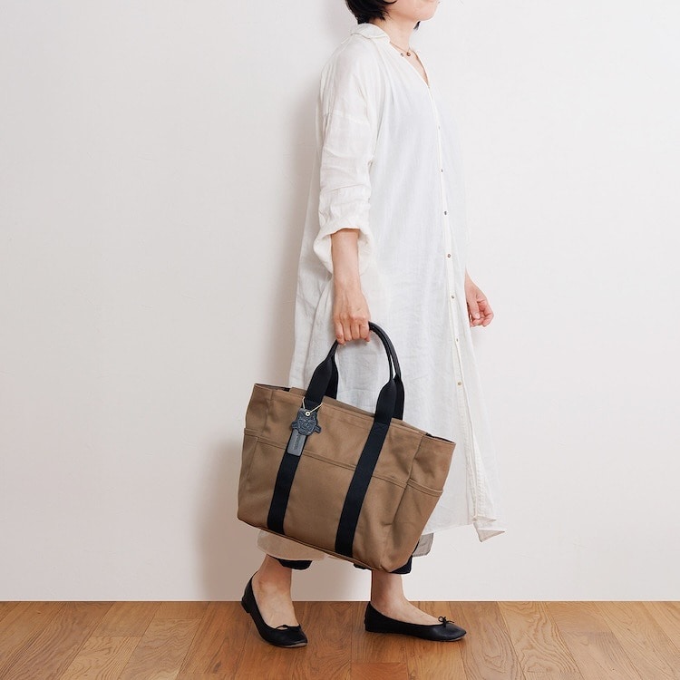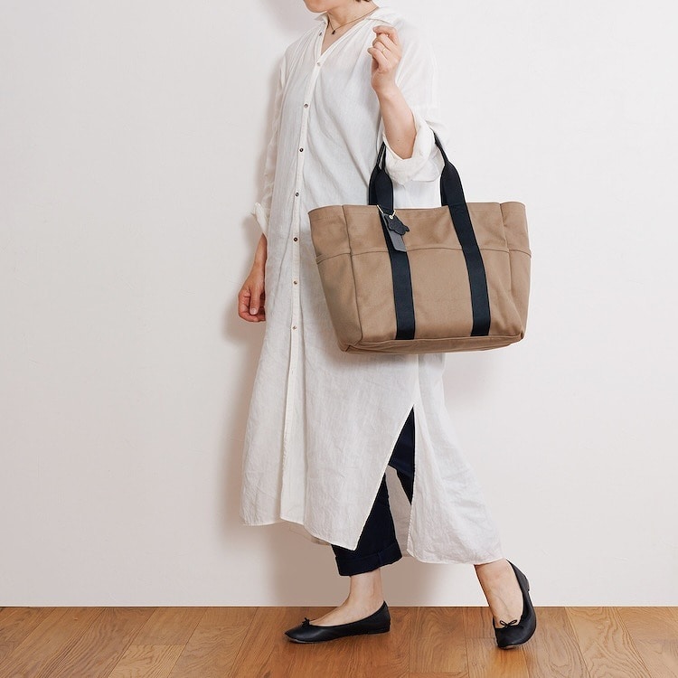 たっぷり収納できる大きめトートは、普段使いから旅行まで幅広く活躍します。