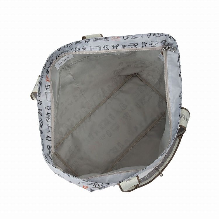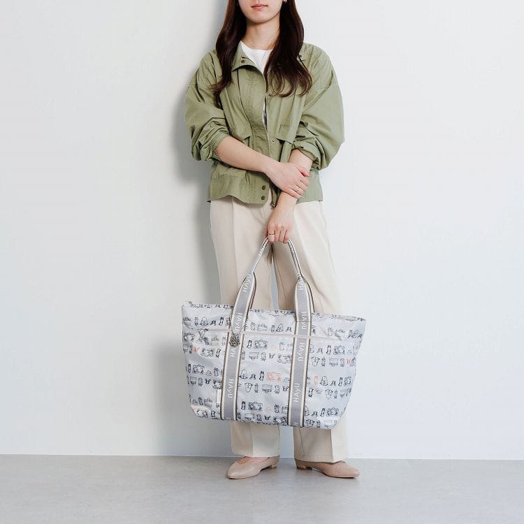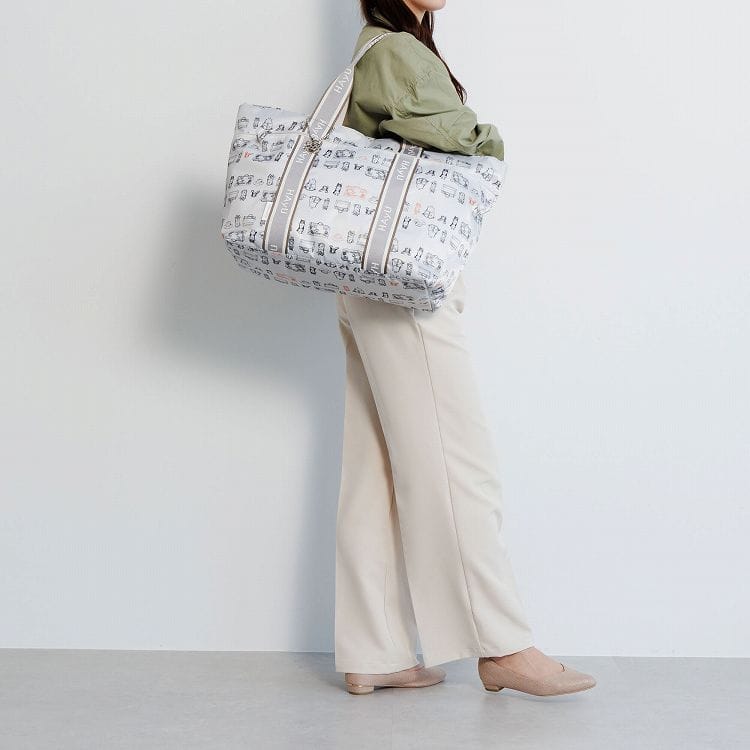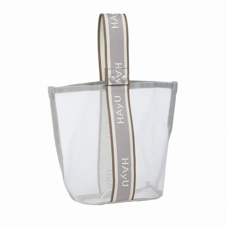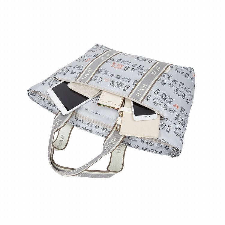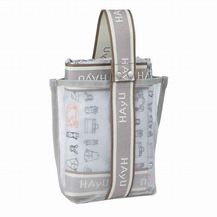 トートバッグを折りたためば、付属のメッシュポーチに収納することが可能です。