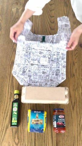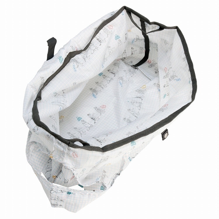 内側の取っ手を持ち、折り返すと、口が大きく開いて荷物の出し入れがスムーズにできる独自構造。