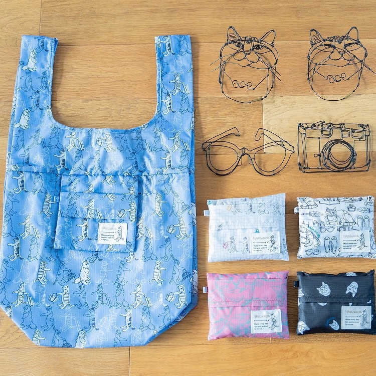 HAyUのワイヤーアートから起こしたオリジナル柄で、お気に入りのネコを選ぶのが楽しいマルシェバッグ。