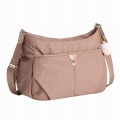 体側に配置された背面ポケットは、セキュリティー性が高く、パスポートや財布など貴重品の収納に安心です。