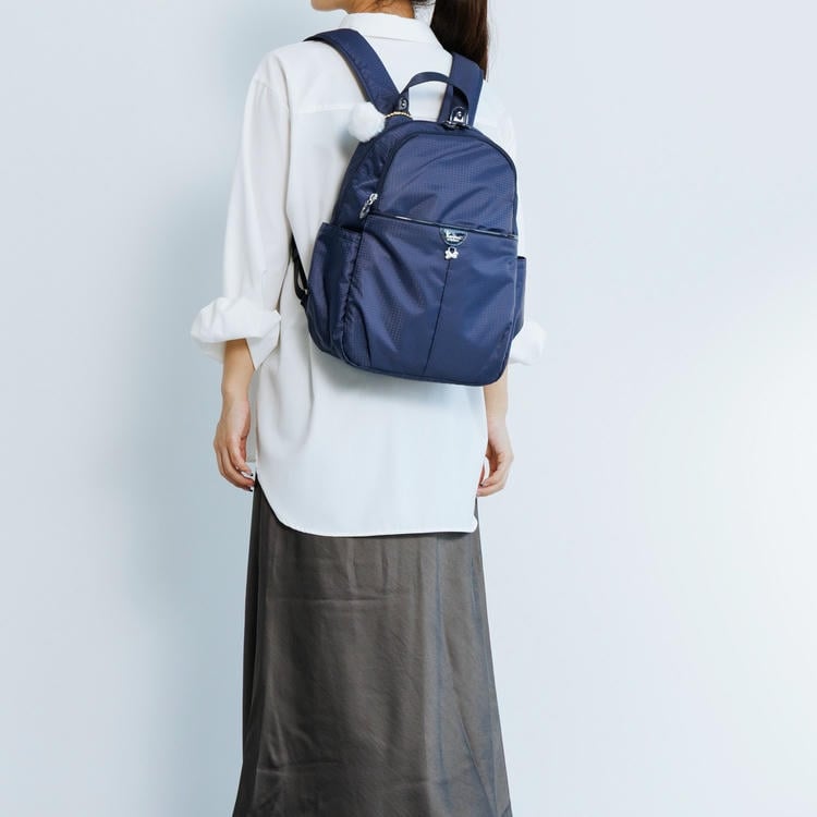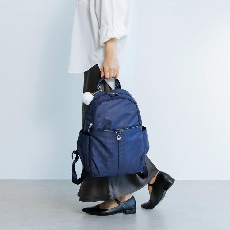 スマホや定期入れに便利なフロントポケット、ボトルや折りたたみ傘の収納に便利なサイドポケット、セキュリティー性の高い背面ポケットなど、