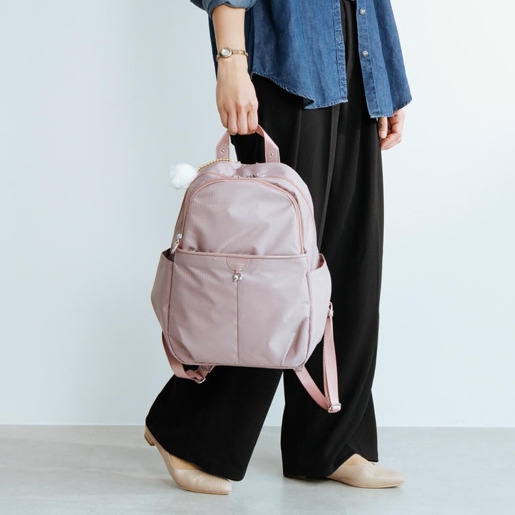 スマホや定期入れに便利なフロントポケット、ボトルや折りたたみ傘の収納に便利なサイドポケット、セキュリティー性の高い背面ポケットなど、