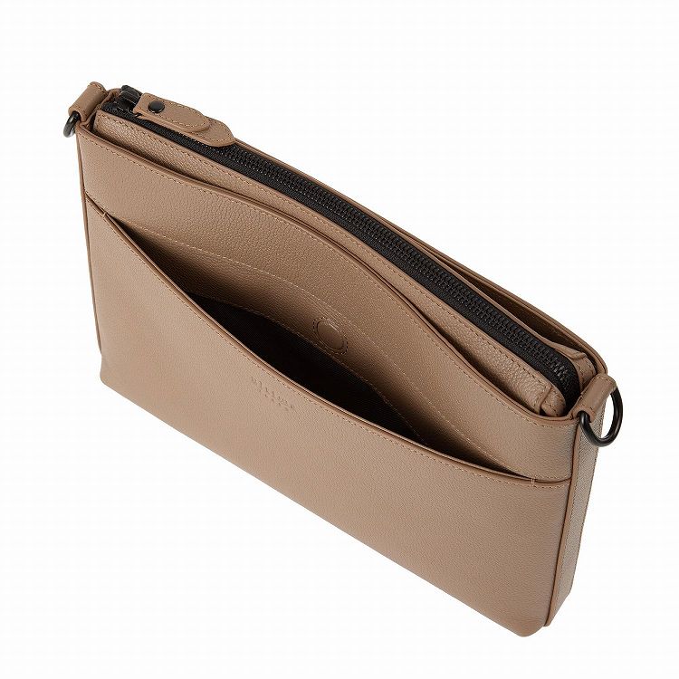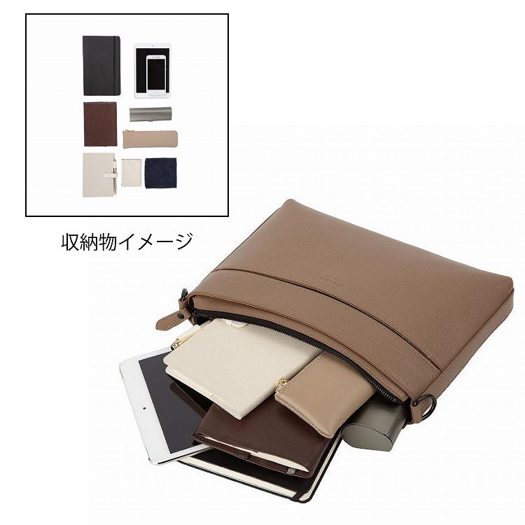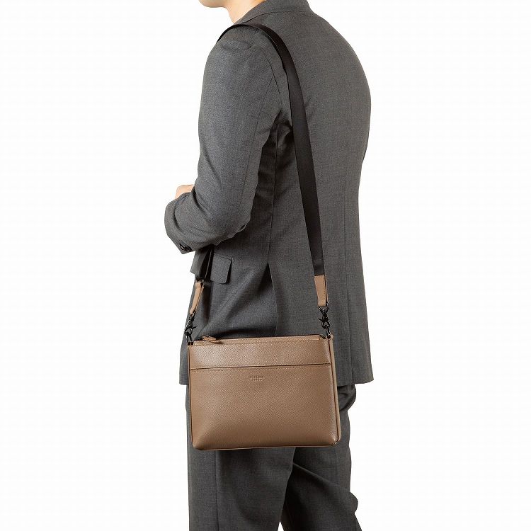 小型のシュリンクシボの革を使い、すっきりとしたシャープな印象のレザーショルダーシリーズ。