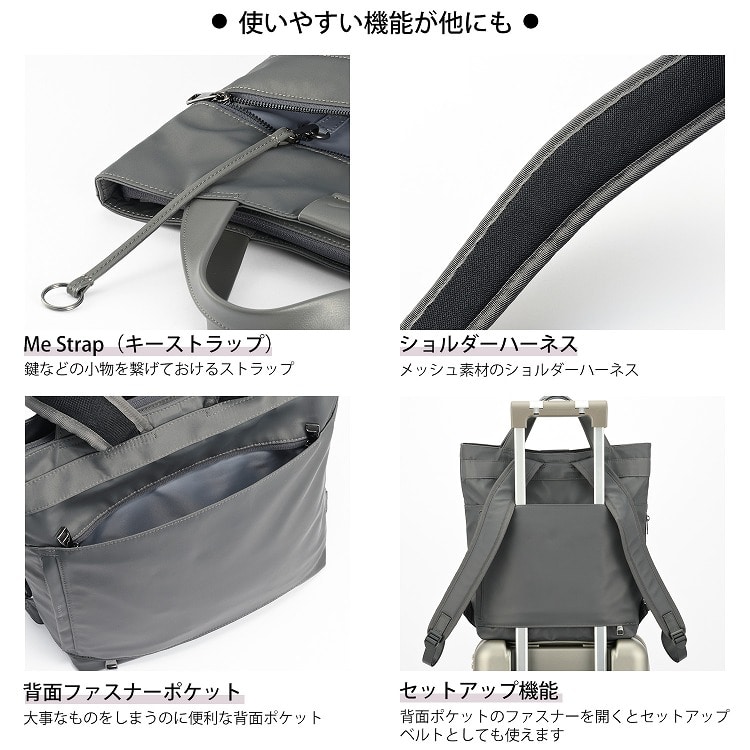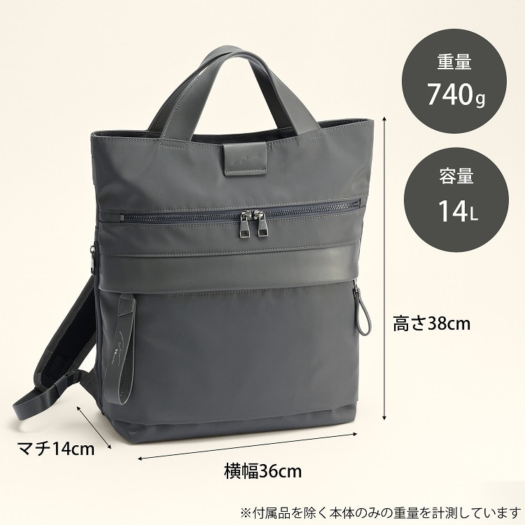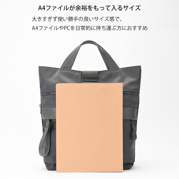トートとしてもリュックとしても使える2WAY仕様で、装いを選ばないすっきりとしたフォルムが、きちんと感のあるシーンにも対応。