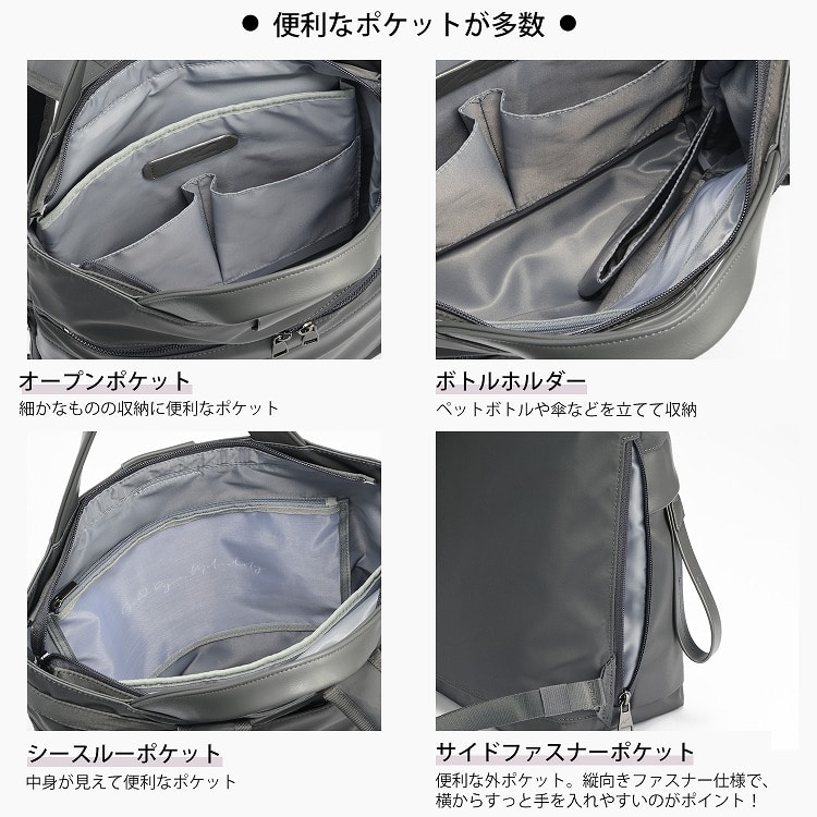 A4ファイル収納/PC収納(13.3inch)/シースルーポケット/他ポケット多数/Napping pl.(スマートフォンポケット)/Me Strap(キーストラップ)/2WAY