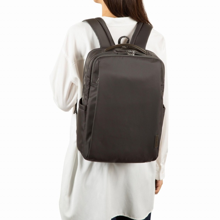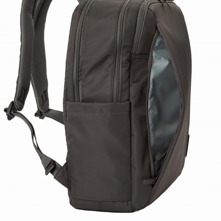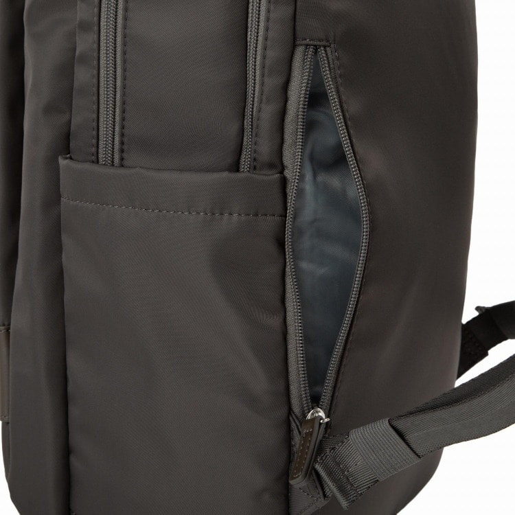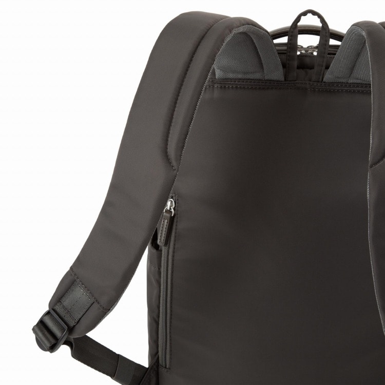 背面へはセキュリティ面も安心のファスナーポケットを搭載。