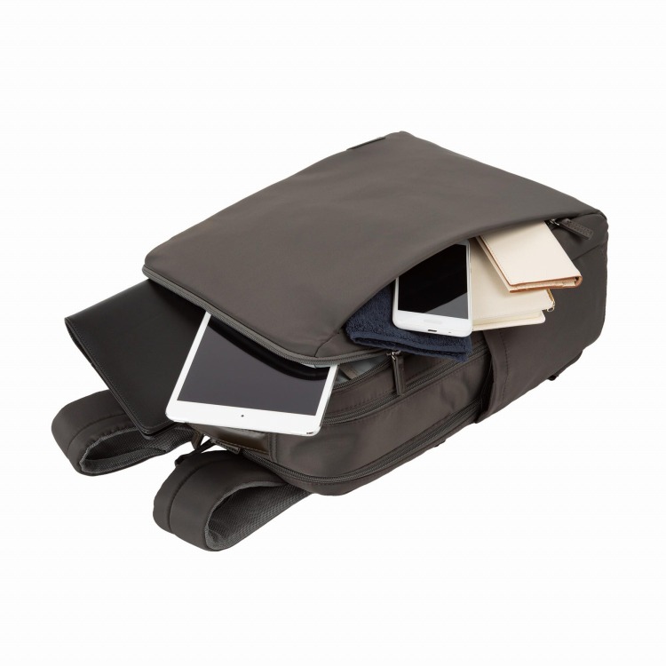 メイン内装と別れており、他の荷物と混ざらずに出し入れが可能です。