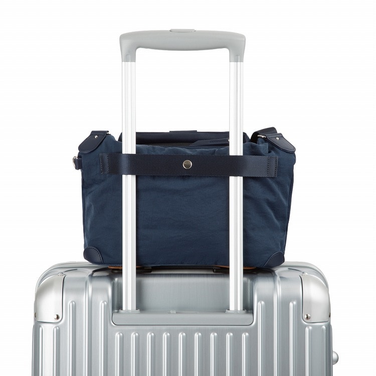 スーツケースのハンドルに固定できるセットアップベルトを設置しているので、