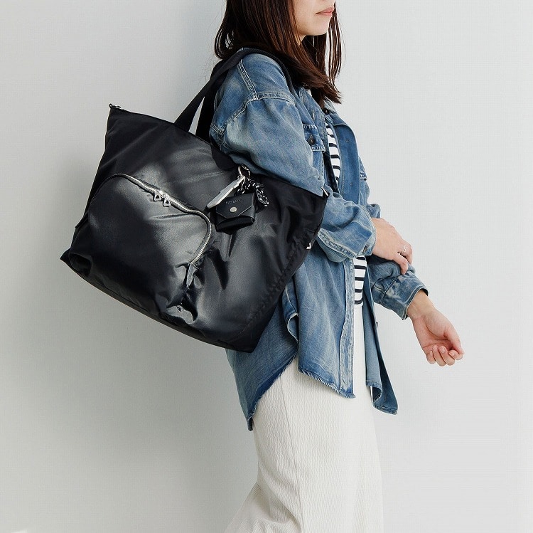 モノトーンとシルバーのパーツでクールな印象にまとめた、トラベルバッグシリーズ。