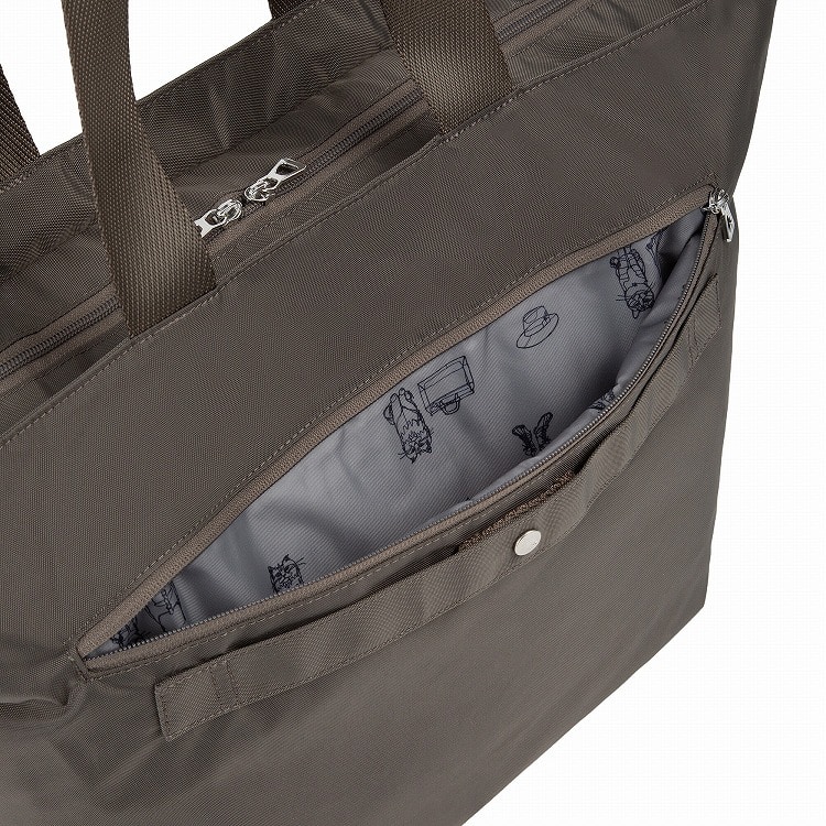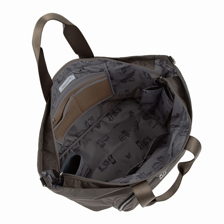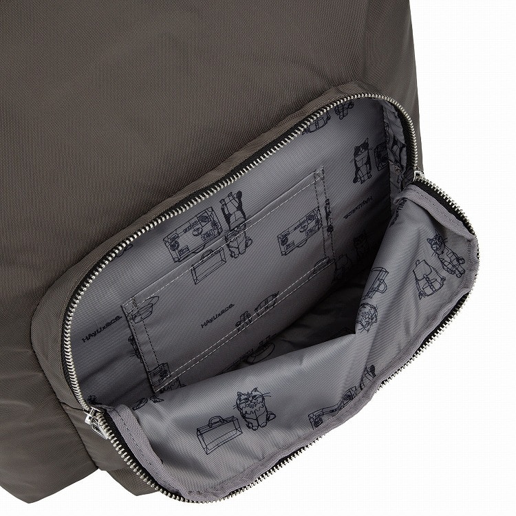 内装には、HAyUオリジナルのワイヤーアートを使用した「ネコと旅バッグ」柄を採用しました。