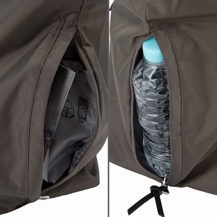 ・側面のファスナーを開けて荷物を出し入れできる2WAYスルーポケット。