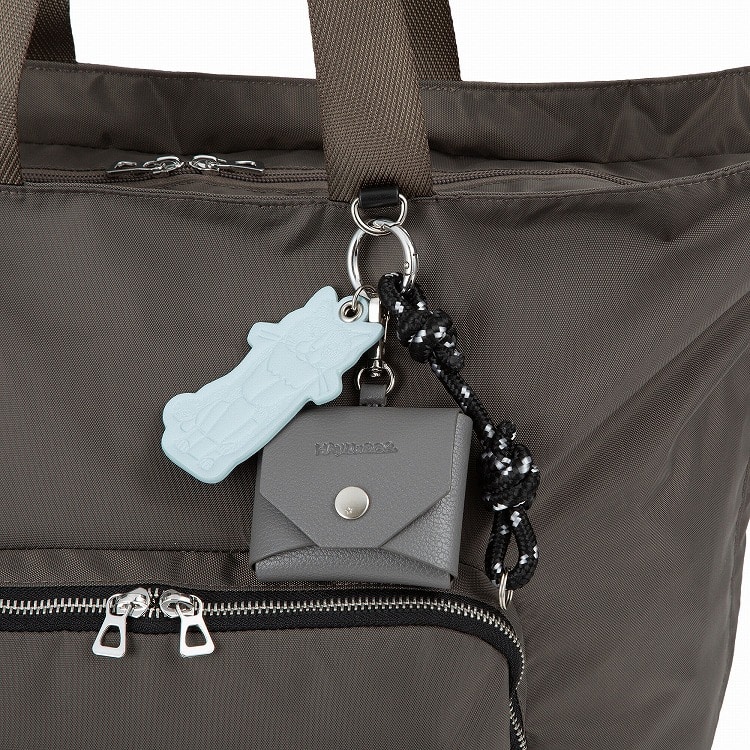 おすわりネコ柄の素押しを施したチャームとマルチケースを含めた3点セットで、その日の気分に合わせて個性的にアレンジできます。