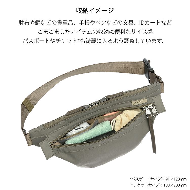 クロスボディータイプは、パスポート・航空券・財布・スマホ・コード類などをすっきり整理できて、体にフィットする使い心地。
