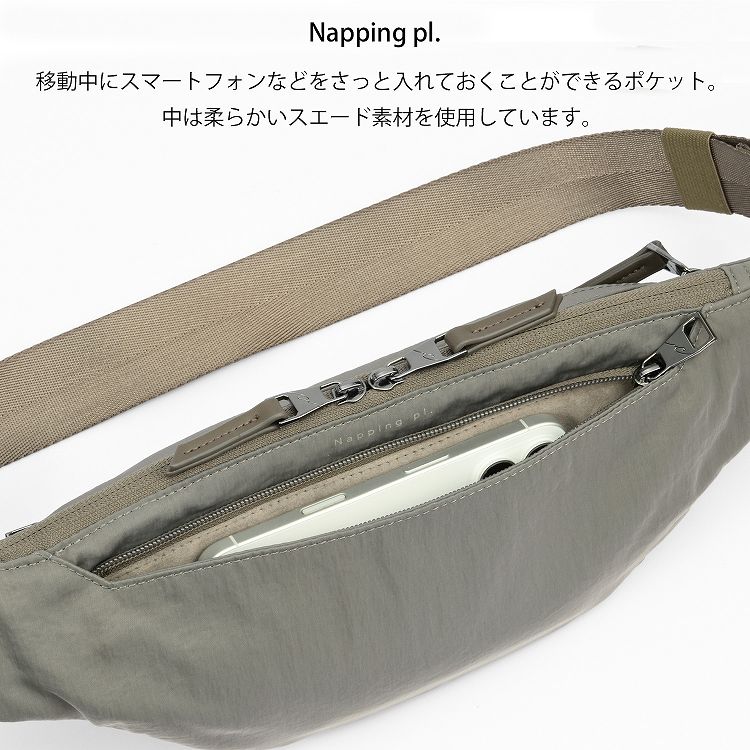 - シースルーポケット/他ポケット多数/Napping pl.(スマートフォンポケット)/Me Strap(キーストラップ)