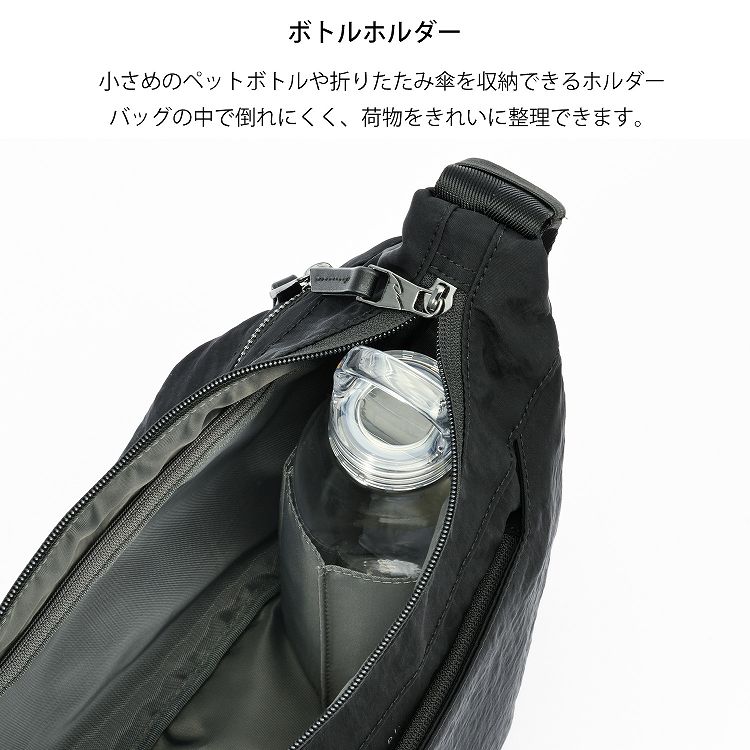 パスポート・航空券・財布・スマホ・コード類などの貴重品はもちろん、ペットボトル、折りたたみ傘、Wi-Fiルーター、コスメポーチ、眼鏡ケース、手帳、サニタリー類までしっかり収納できます。