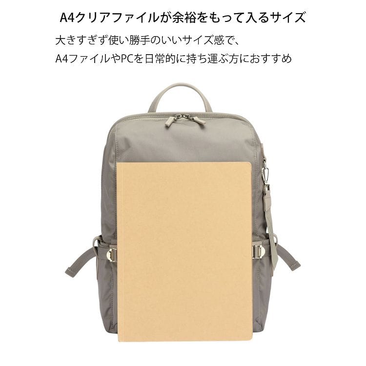 大きすぎず使い勝手の良いサイズ感で、A4ファイルやPCを日常的に持ち運ぶ方におすすめです。