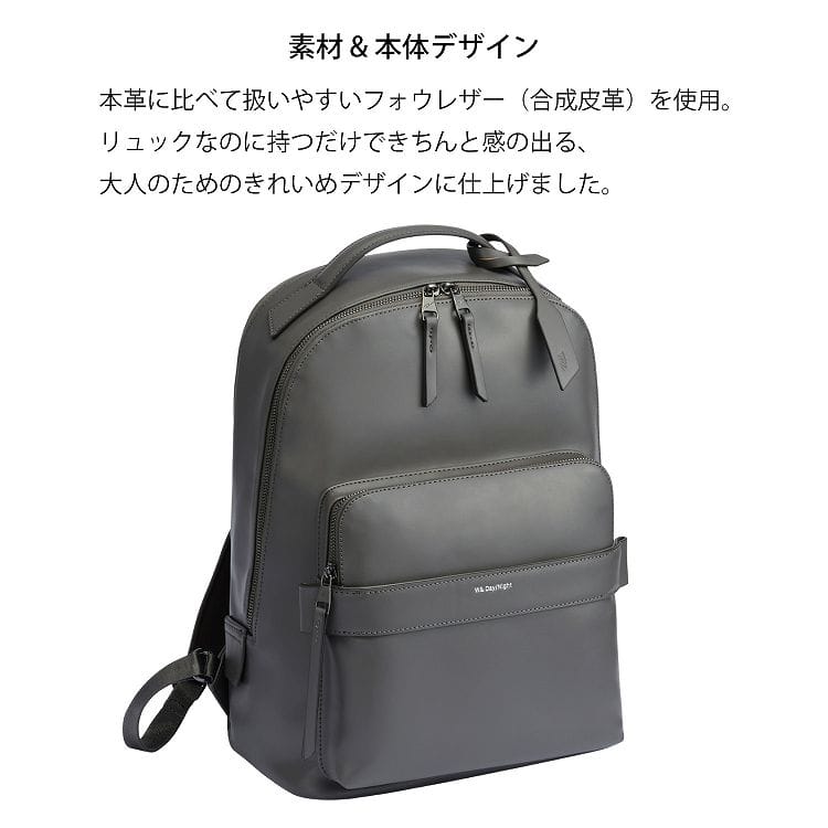 そんな要望にお応えすべく、本革に比べて扱いやすいフォウレザー(合成皮革)を使用した通勤リュックです。
