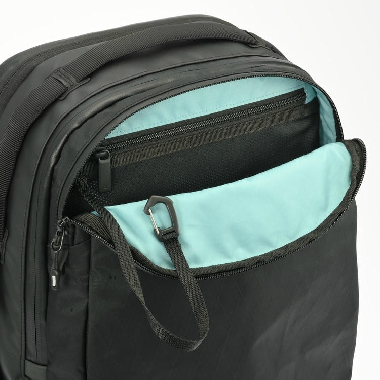 メイン収納が2気室に分かれており、荷物の種類ごとに整理整頓が可能。