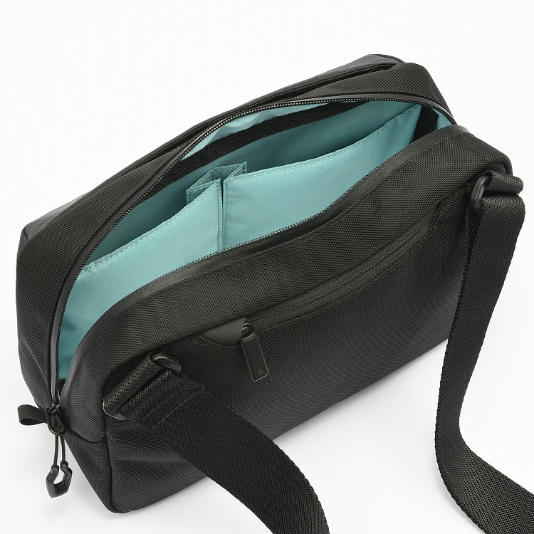 小型ながらポケットも多い、ミニマルで多機能なショルダーバッグ。