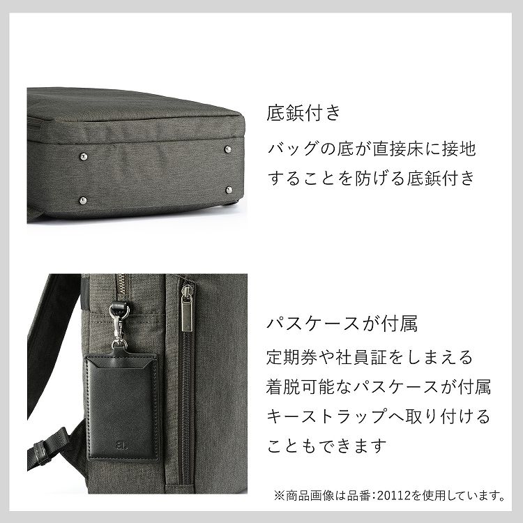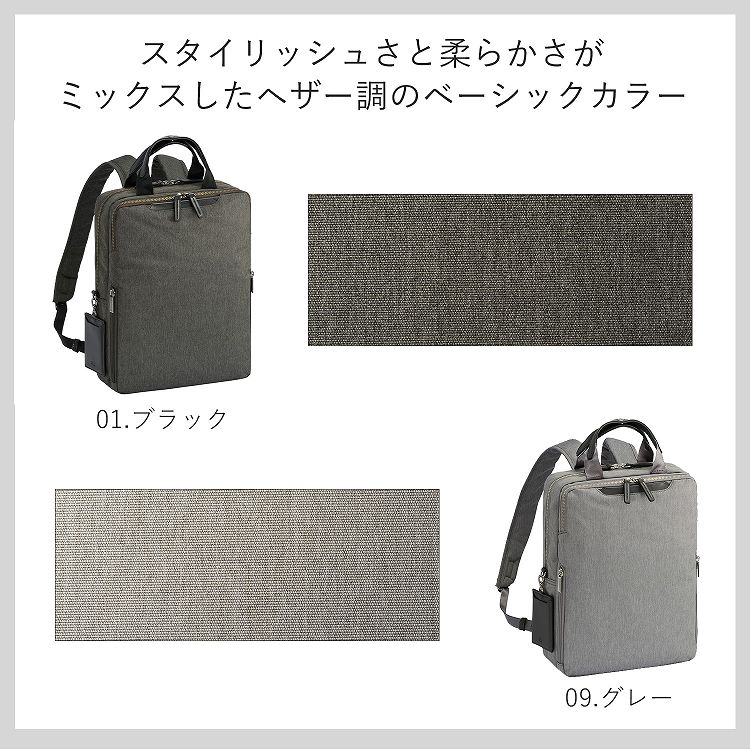 通勤に最適なスクエア型のスリムで機能的なA4サイズ対応のビジネスリュック。