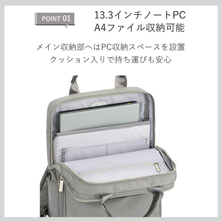 13.3インチノートPC収納/A4ファイル収納/バーテクトポケット/セットアップ機能/ユニバーサルハーネス