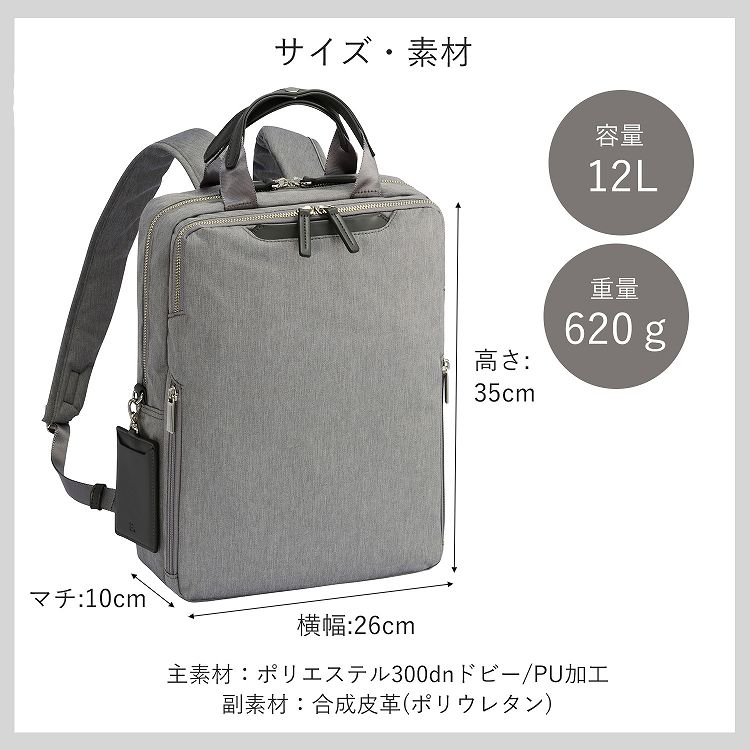 電車内などで前持ちした際も邪魔になりにくい、スリムでコンパクトなシルエットです。