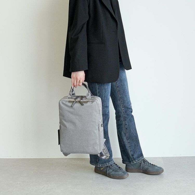 収納しやすくすっきり見えるスクエア型フォルムや、前持ちスタイルでも邪魔になりにくい薄マチ形状が人気のフィッテムから、メランジ素材シリーズが登場!フォルムや機能はそのままに、奥行きのあるメランジ素材で上品な印象に仕上げました。