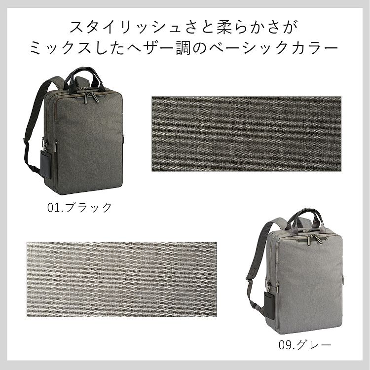 収納しやすくすっきり見えるスクエア型フォルムや、前持ちスタイルでも邪魔になりにくい薄マチ形状が人気のフィッテムから、メランジ素材シリーズが登場!フォルムや機能はそのままに、奥行きのあるメランジ素材で上品な印象に仕上げました。