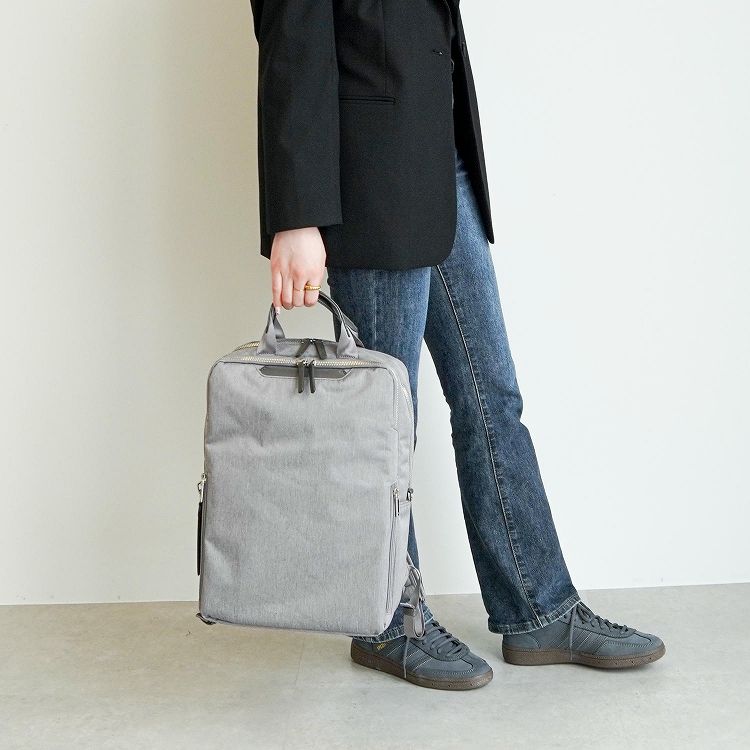 収納しやすくすっきり見えるスクエア型フォルムや、前持ちスタイルでも邪魔になりにくい薄マチ形状が人気のフィッテムから、メランジ素材シリーズが登場!フォルムや機能はそのままに、奥行きのあるメランジ素材で上品な印象に仕上げました。