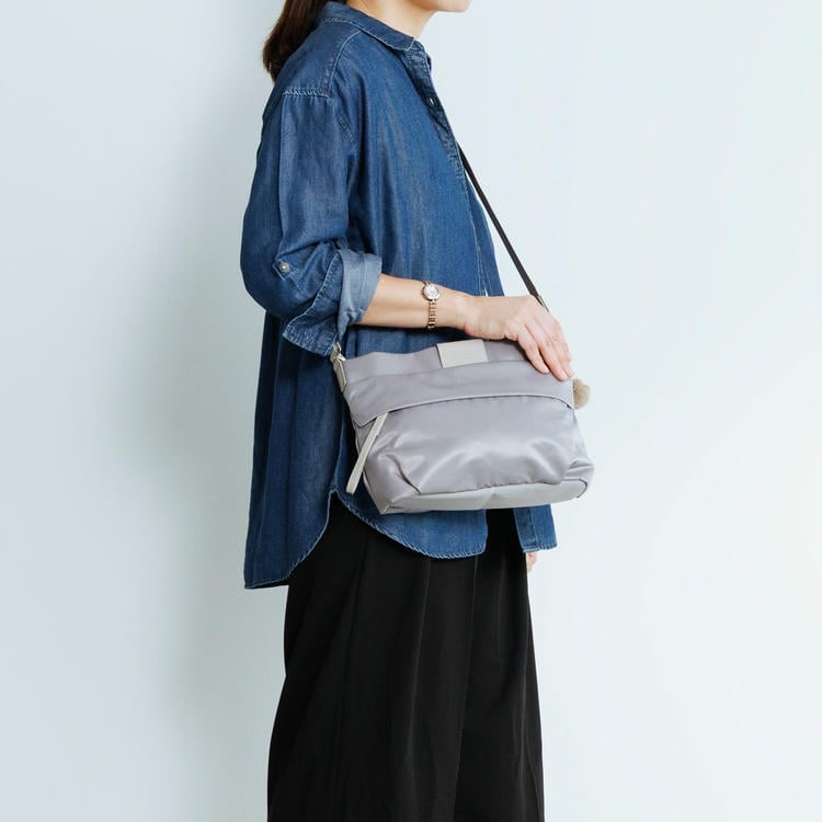 本体はリサイクルナイロンを使用し、光沢のあるサテン織りで仕上げたエシカルで良質な素材です。