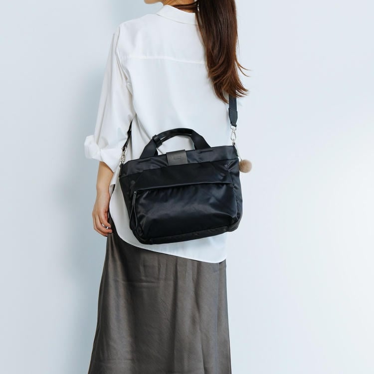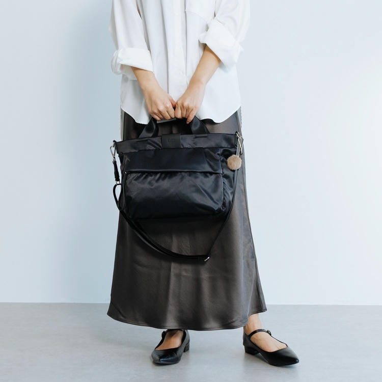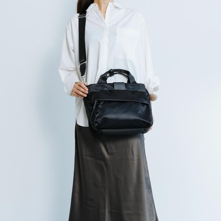 本体はリサイクルナイロンを使用し、光沢のあるサテン織りで仕上げたエシカルで良質な素材です。