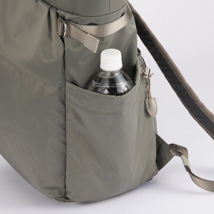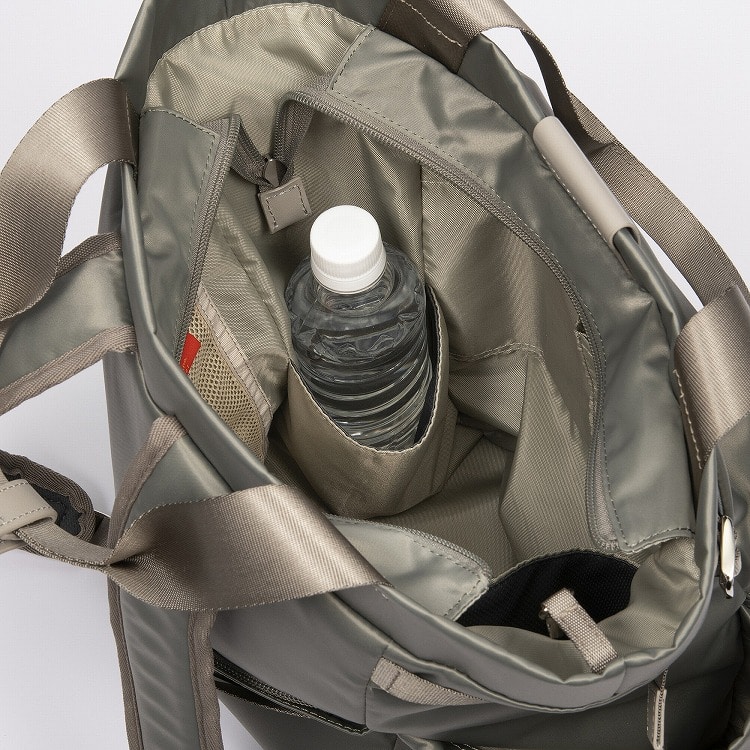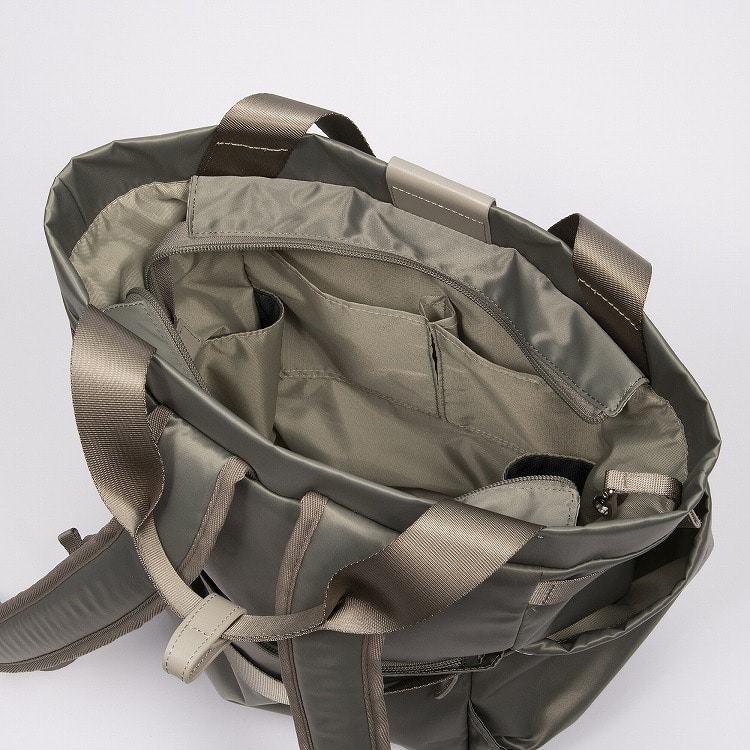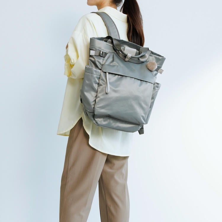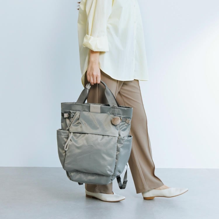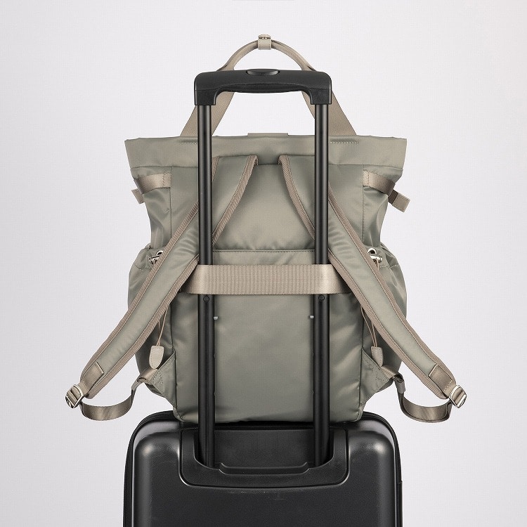本体はリサイクルナイロンを使用し、光沢のあるサテン織りで仕上げたエシカルで良質な素材です。
