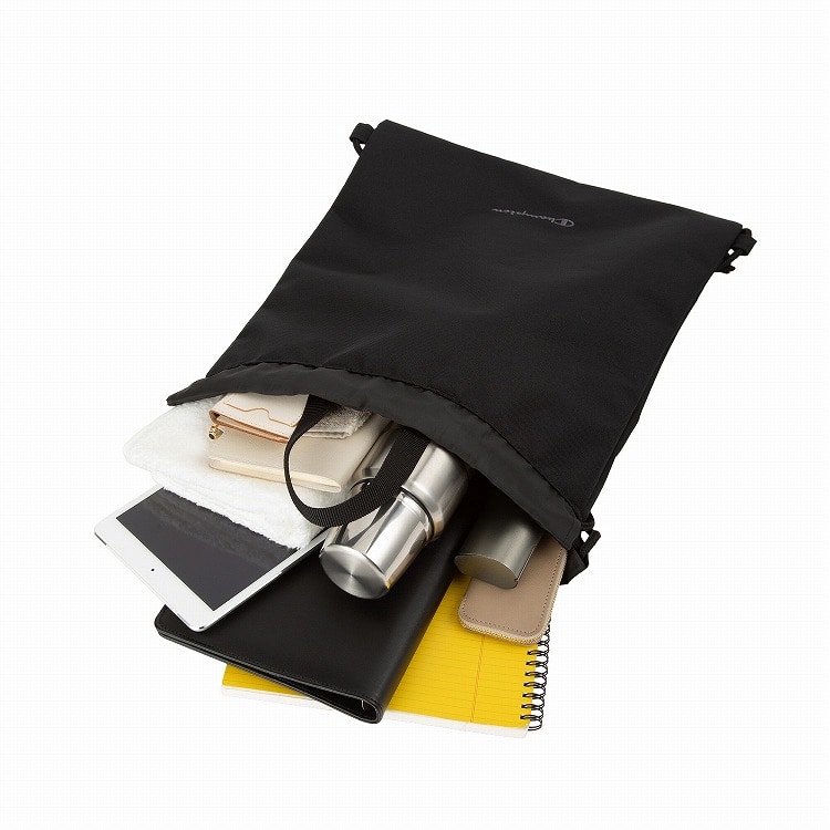 紐を引っ張るだけで口が簡単に締まる、巾着仕様。