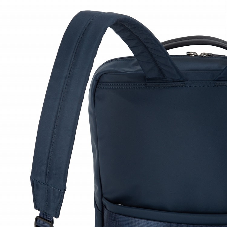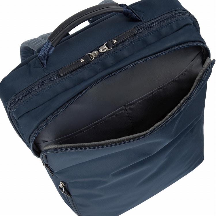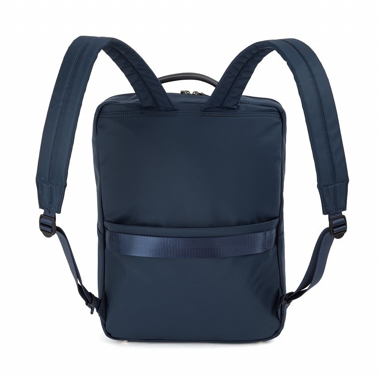 スマートな通勤を叶える、スリムで機能的なA4サイズ対応のスクエア型ビジネスリュック。