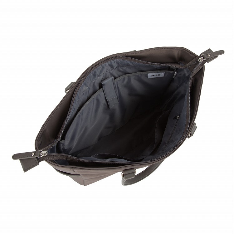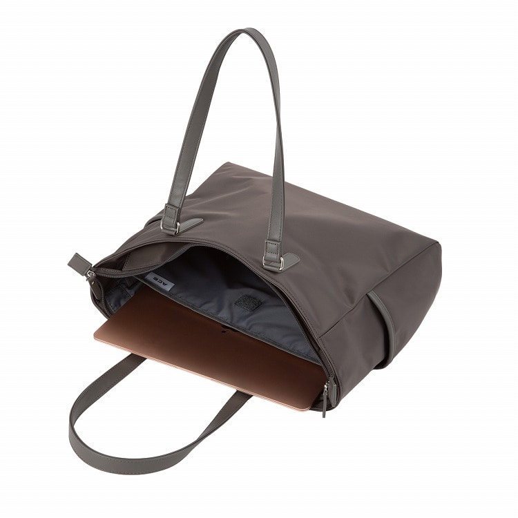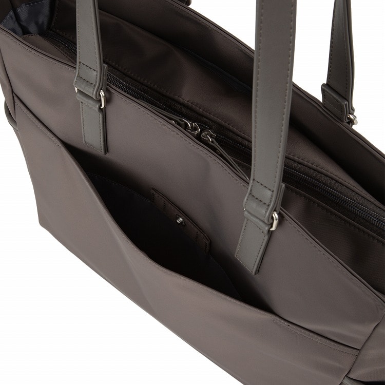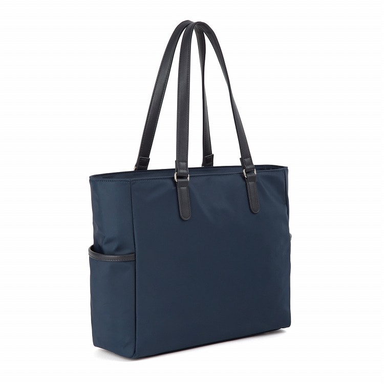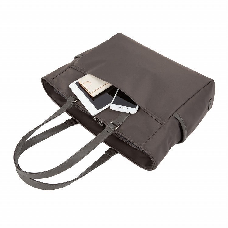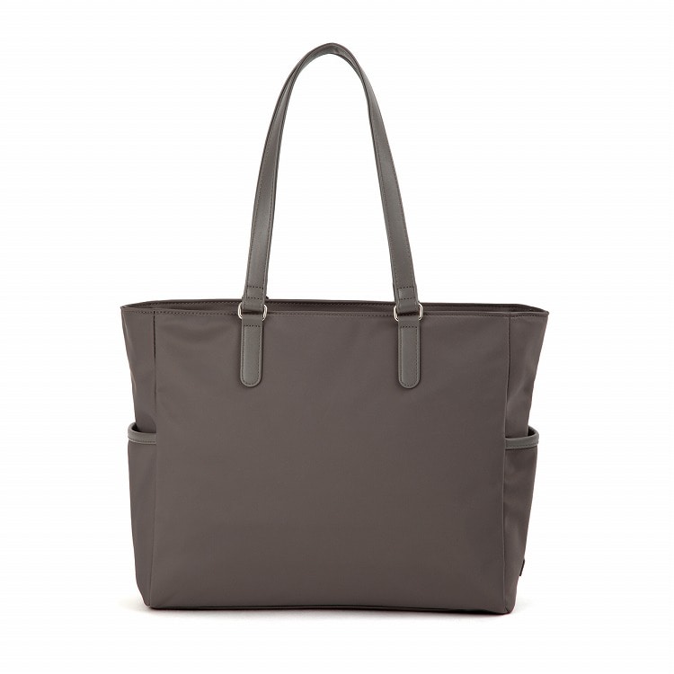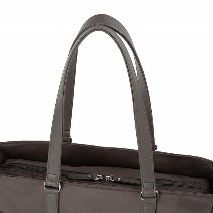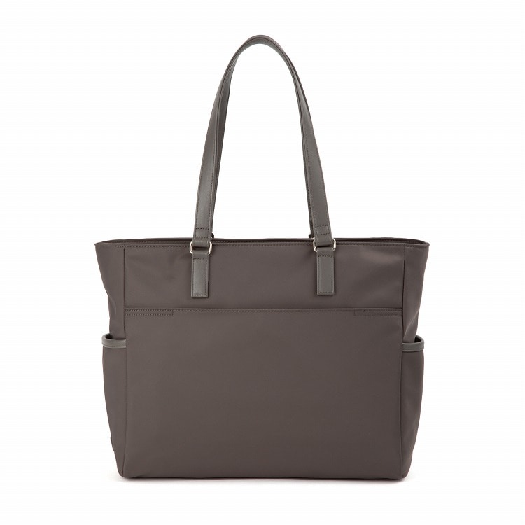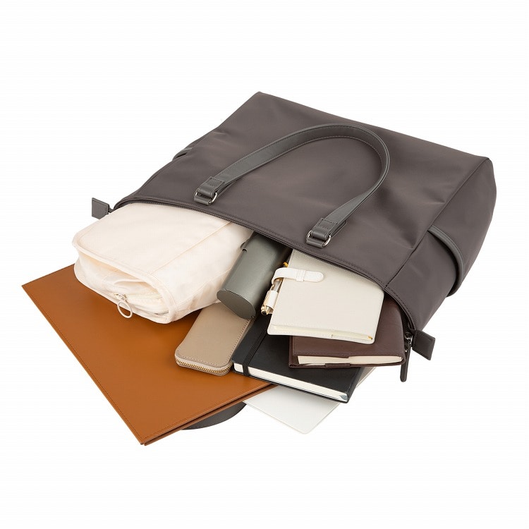 スーツスタイルやオフィスカジュアルスタイルに最適なきれいめデザインのトートバッグ。