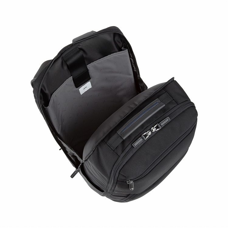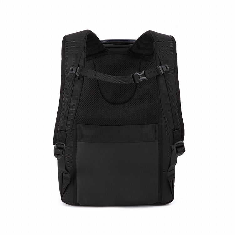 背面に15.6インチPC収納可能気室を搭載した2気室タイプのリュック。