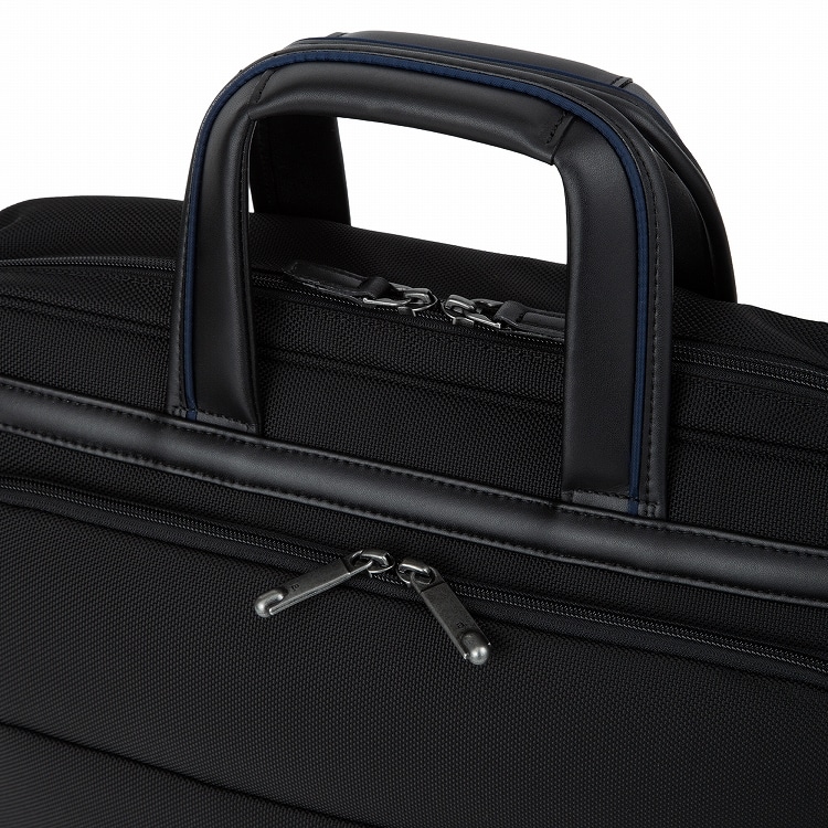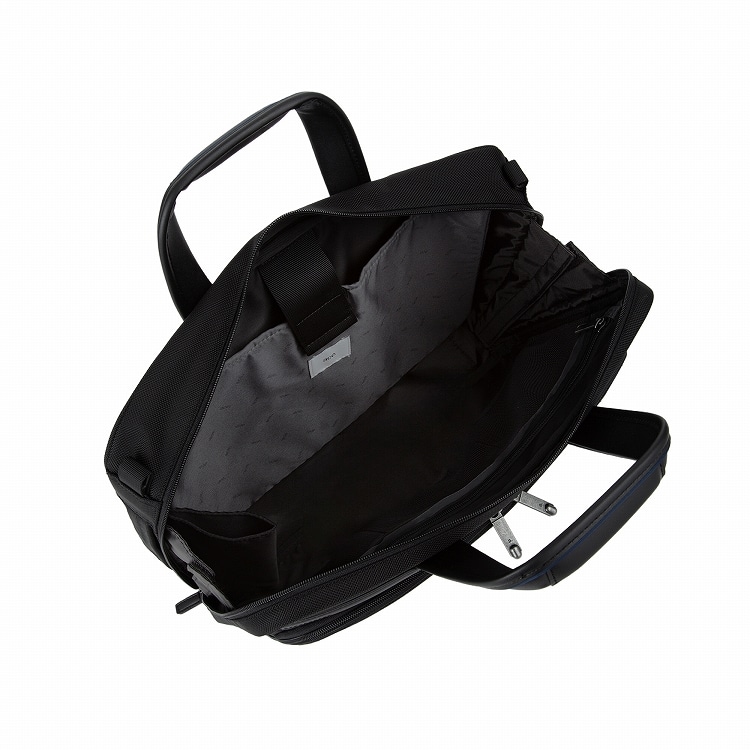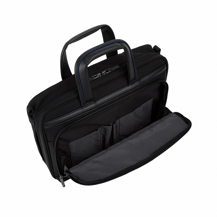 しっかりと自立する設計で、ビジネスバッグとしての機能性を高めています。