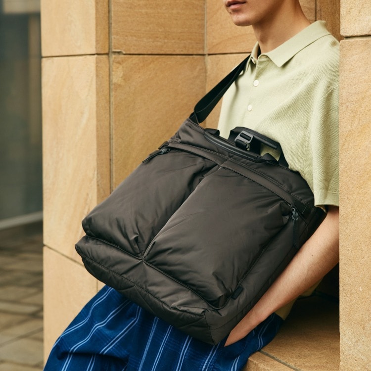 カジュアルスタイルに欠かせないオーセンティックなアイテムに、都市生活に必要なファンクションを配したバッグシリーズ〈CITY/VT〉の素材替えモデル。